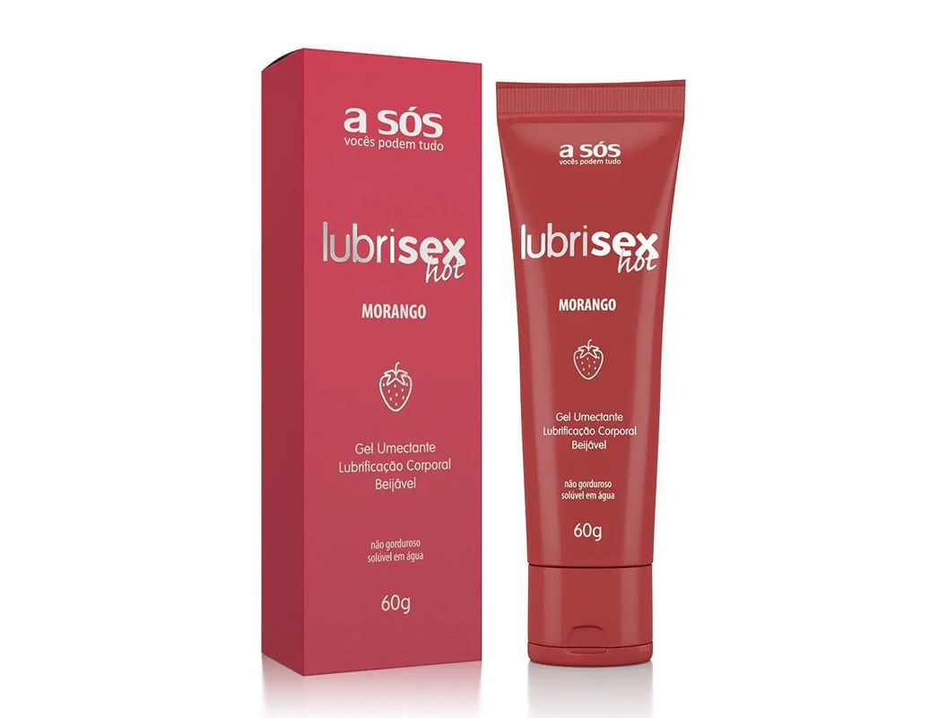 - 01 Gel Lubrificante Beijável Lubrisex Morango Hot – 60g (bisnaga flip-top)